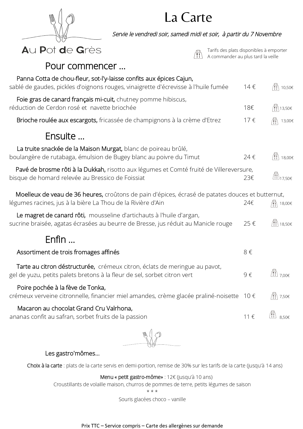 Cocktails, buffets, plats, menus... à emporter, contactez nous : restaurant.aupotdegres@gmail.com